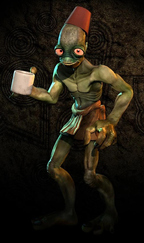 Alf is a Mudokon who Abe first encounters while breaking back into RuptureFarms. He is seen working in a microbrewery in RuptureFarms as a barista until Abe eventually saves him. After being rescued from the treacherous meat factory, Alf is one of the five Mudokons that travels with Abe to Necrum, but falls ill from the thirst-quenching SoulStorm Brew after finding a vending machine. Alf and the other Mudokons are eventually saved by Abe, after which Alf starts Alf's Rehab & Tea to treat many ill-fated Mudokons. Outside of the games, Alf frequently answers letters from fans on the Oddworld website.